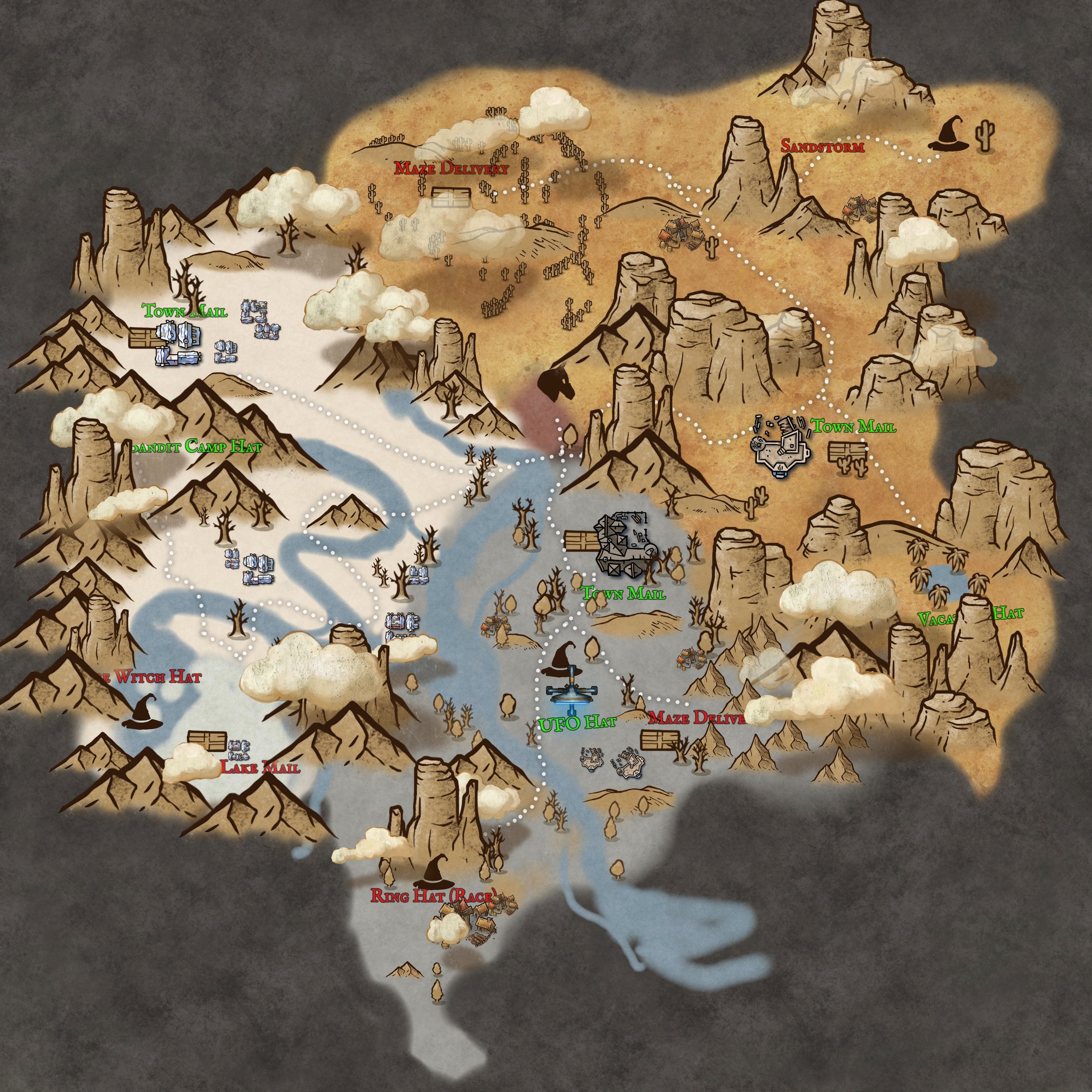 Traveling across the diverse Western landscapes, you'll encounter strange situations. If you solve these world events, you'll be rewarded with fabulous hats!