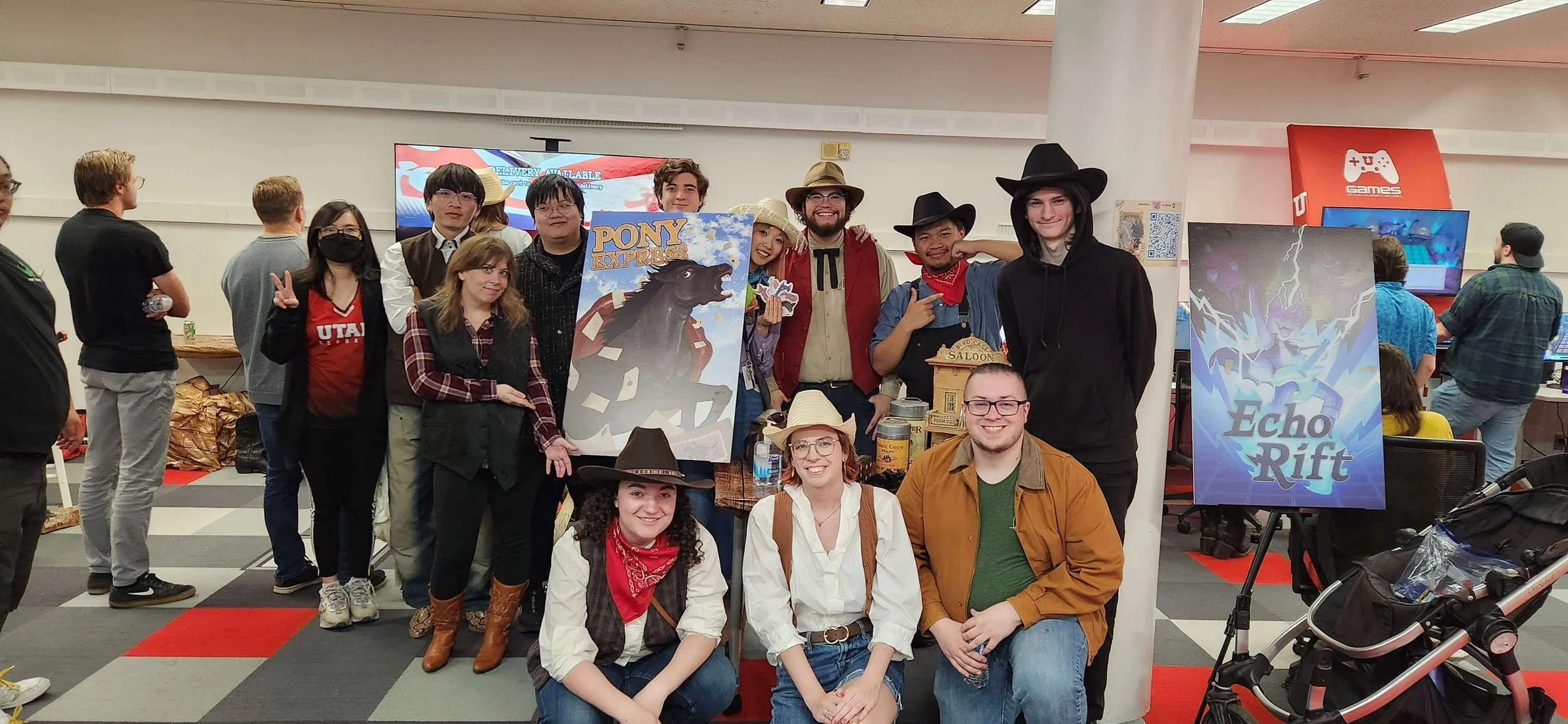 Pony Express is an custom controller game that takes place in the old Wild West. Your "H.O.R.S.E." (Haptic Operated Rider Saddle Experience) is outfitted to respond to inputs like an actual horse! Pull the reins to turn or stop, kick to go, use physical letters to deliver mail, and press the saddle horn to breathe fire!