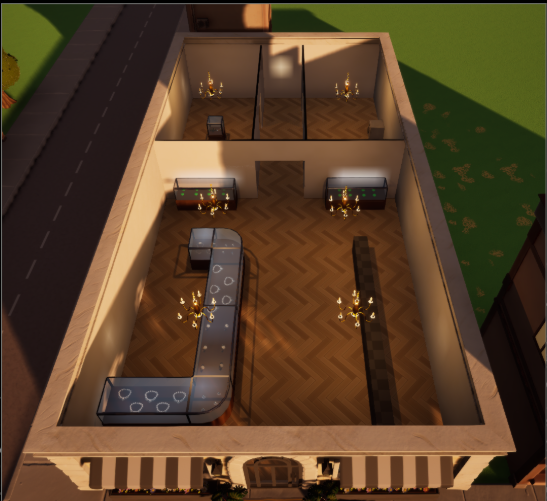 I helped with general asset population and level design on our jewelry store and casino levels as well as the level select screen.
