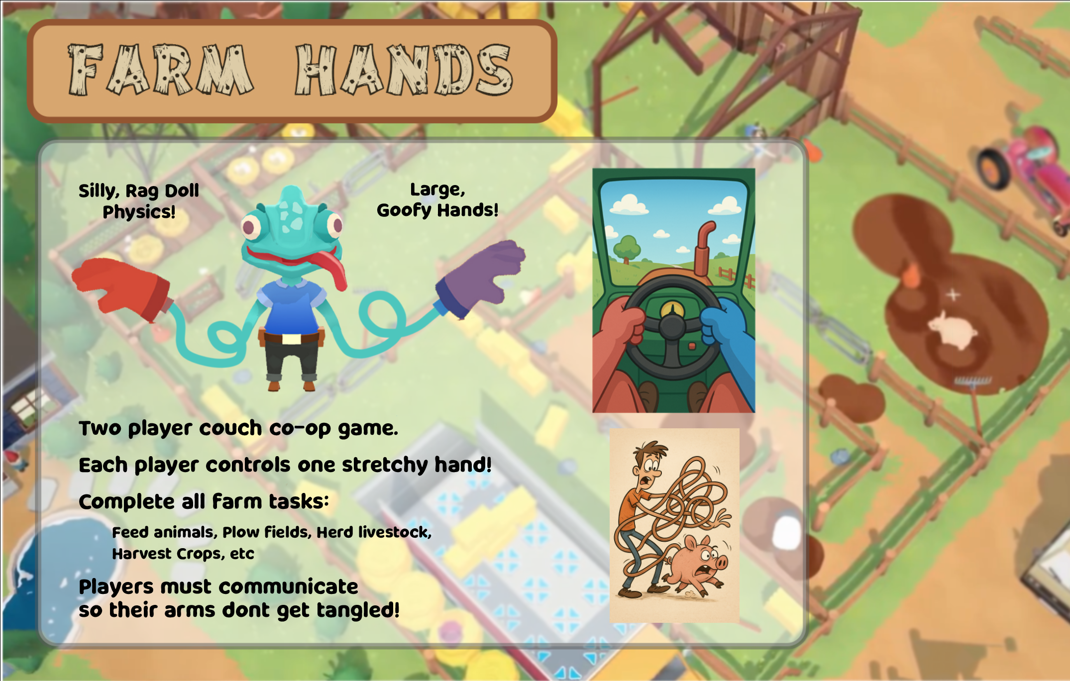 Originally it was supposed to be set on a farm, but a few weeks into designing the game and its art style, we had an epiphany to pivot to a heist game.