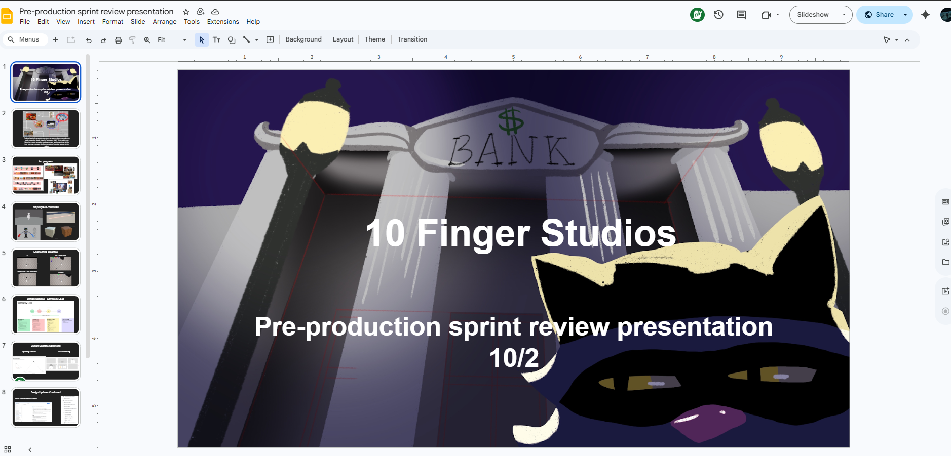 I was in charge of creating and giving milestone presentations to our fellow teams and our executive producers.